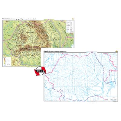 Romania. Harta fizico-geografica si a resurselor naturale de subsol Duo 140x100 cm CR-3101DB