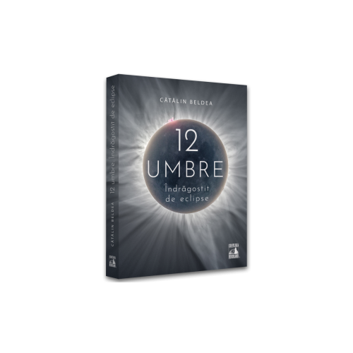 12 Umbre este o carte despre explorare calatorii spre capatul lumii dar si despre frumoasa stiinta a astronomiei. Autorul pleaca in aventurile sale cosmice inca din copilarie de cand se juca de-a v-ati ascunselea in fata blocului si ajunge pe sase continente fugarind eclipsele totale de Soare. Vom calatori cu gandul alaturi de Catalin Beldea prin tundra siberiana prin labirintul uman al Shanghaiului vom zbura cu balonul in stratosfera de deasupra Australiei pentru ca apoi sa aterizam in desertul din Atacama sau pe un atol de corali din Pacificul de Sud. Zburam deasupra norilor si deasupra Africii dar si dincolo de Cercul Polar de Nord in cautarea umbrei Lunii. Vedem cum Soarele rasare de doua ori in aceeasi zi din cele doua Americi si admiram un album fotografic cu adevarat exceptional de la cele 12 expeditii spre cate un punct fictiv. Care e cea mai frumoasa eclipsa si cea mai interesanta dintre cele 12 expeditii Raspunsul autorului va fi intotdeauna acelasi Urmatoarea