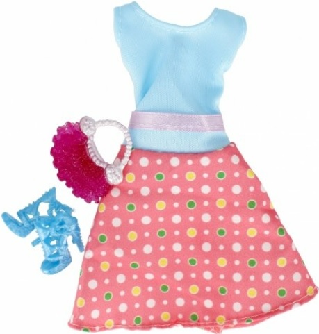 Avantaje produs: setul include o rochie pentru o papusa cu accesorii si pantofi sau o bluza cu pantaloni lungi sau pantaloni scurti cu accesorii si pantofi.