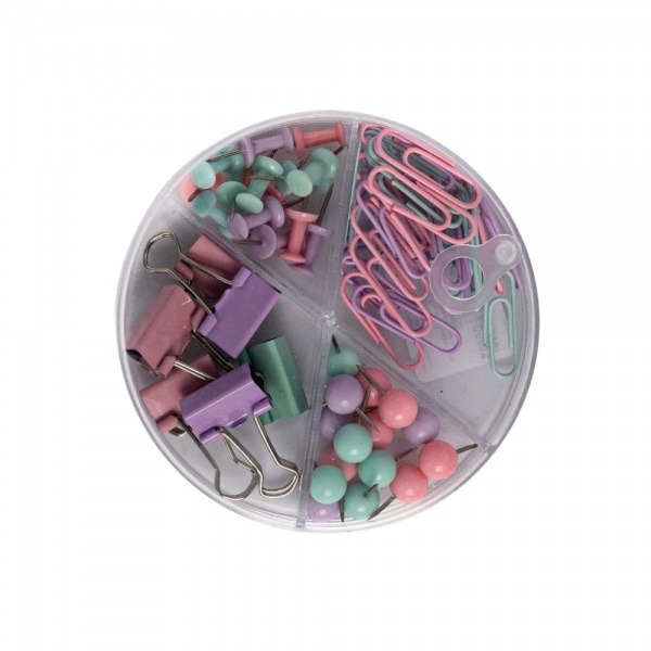 Accesorii set birou Cnx 62 piese culori pastel - agrafe ace gamalie ace tabla clips