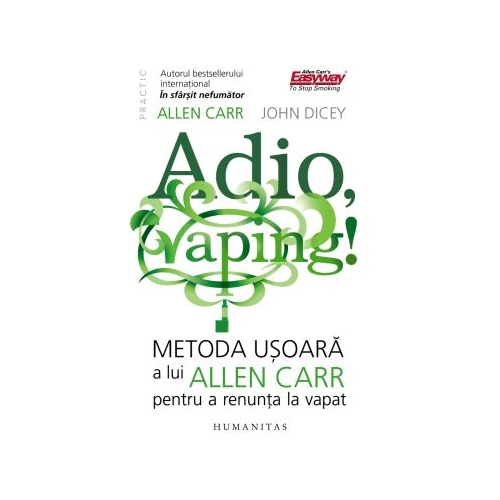 Metoda usoara a lui Allen Carr este un fenomen global – un tratament dovedit clinic, 100% fara medicamente, impotriva dependentei de nicotina. Initial creata ca metoda revolutionara pentru a renunta la fumat, cu rezultate spectaculoase in intreaga lume, aceasta abordare inovatoare vizeaza acum si cel mai raspandit sistem modern de livrare a nicotinei: vapatul. Spre deosebire de metodele traditionale, menite sa bage spaima in dependentii de nicotina sau care impun restrictii dureroase, metoda usoara a lui Allen Carr dezvaluie pas cu pas mecanismele din spatele dependentei tale. Astfel este eliminata complet dorinta de a vapa – fara efort, fara a apela la vointa si fara sacrificii. Tot ce trebuie sa faci este sa citesti cartea pana la capat si sa urmezi toate instructiunile. Iar eliberarea va veni de la sine.