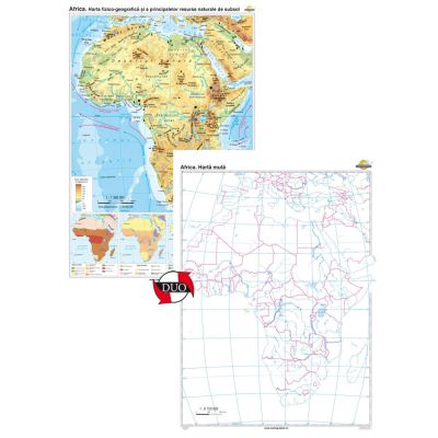 Africa. Harta fizico-geografica si a principalelor resurse naturale de subsol Duo 120x160 cm CR-3119DA