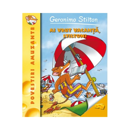 AI VRUT VACANTA, STILTON? Dar cine m-a facut sa plec la Puerto Catorcio? E o vacanta groaznica: urmarit de rechini si gandaci, imi ard botul la soare, trebuie sa ma arunc cu parasuta si sa fac catarat liber... Sfanta mozzarella, nu stiu cand o sa ajung acasa sa ma odihnesc!