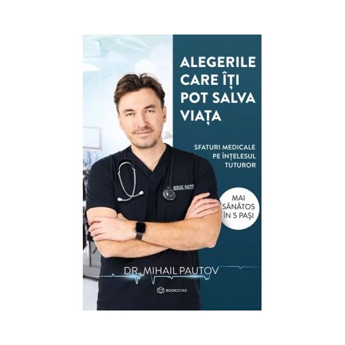 Tot ce imi doresc este ca voi sa aveti grija de voi si sa faceti alegeri corecte intr-un mod educat. Dr. Mihail Pautov Dr. Mihail raspunde intrebarilor tale Cum putem scapa de anxietate Ce inseamna un somn sanatos si cum il obtinem Care este legatura dintre somn si sistemul imunitar Poate meditatia sa diminueze inflamatia din corp Cum iti poti forma obiceiuri mai sanatoase Cum apar miturile despre vaccinare si de ce se raspandesc atat de usor Cum putem sa prevenim infectarea cu virusul anului Poti avea tensiunea arteriala crescuta fara sa fii constient de acest lucru Sursa ta de informatii medicale obiective si prietenoase Dr. Mihail Pautov imbina pasiunea pentru medicina si grija pentru oameni intr-un ghid complet care ne invita sa privim dincolo de mituri si sa luam decizii importante pentru sanatatea noastra in mod informat. Pe parcursul cartii el abordeaza cu empatie problemele de care ne lovim cu totii de la anxietate si insomnii la tensiune arteriala crescuta si afectiuni digestive si ne ofera informatii medicale obiective intr-un mod simplu si usor de inteles. Dr. Mihail face parte dintr-un nou val de medici care au o atitudine deschisa fata de public se informeaza constant si se bucura atunci cand primesc intrebari din partea pacientilor iar aceasta carte este un nou mod extrem de practic de a oferi oamenilor instrumentele de care au nevoie pentru a preveni afectiunile grave care necesita adesea interventii chirurgicale. Sanatatea mintala calitatea somnului nutritia activitatea fizica relatiile care ne hranesc inima toate au un impact asupra sanatatii noastre fizice. Astfel Dr. Mihail specializat in chirurgie generala ne invita sa operam schimbari importante mai intai in sufletul nostru sa taiem tot ceea ce nu ne este de folos si sa facem alegeri mai bune pentru sanatatea noastra. ACEASTA CARTE ESTE PENTRU TINE DACA Nu reusesti sa ai o alimentatie echilibrata indiferent de eforturile facute. Ai probleme cu somnul sau nu te odihnesti chiar daca dormi suficient. Esti in cautarea unor informatii medicale pe intelesul tau. Te simti lipsit de energie indiferent ce iti propui sa faci. Iti lipseste motivatia de a face schimbari pozitive in viata ta. Vrei sa afli adevarul din spatele unor mituri medicale. Esti in cautarea unui medic empatic care sa-ti schimbe perspectiva asupra vietii.