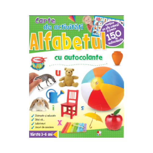 Cartea de activitati cu autocolante – ALFABETUL este un instrument util si captivant pentru dezvoltarea cunostintelor prescolare.