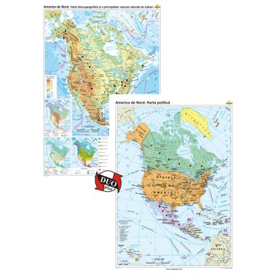 America de Nord. Harta fizico-geografica si a principalelor resurse naturale de subsol si America de Nord. Harta politica Duo Plus 100x140 cm CR-3113DPB