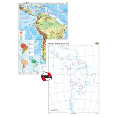 America de Sud. Harta fizico-geografica si a principalelor resurse naturale de subsol Duo 100x140 cm CR-3114DB