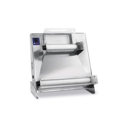 - Doua perechi de role reglabile pentru a seta grosimea aluatului 0-4 mm si a-i da o forma rotunda