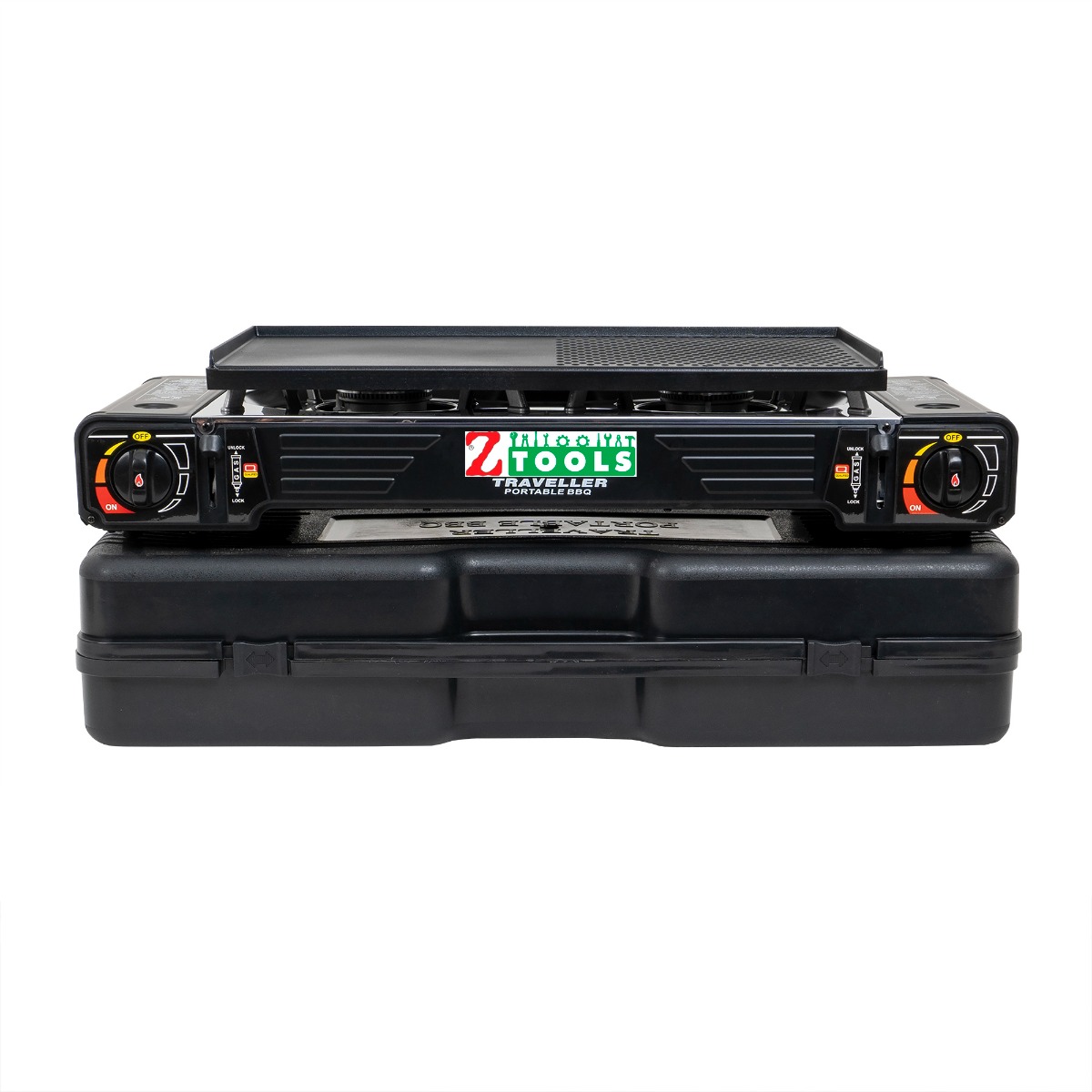 Aragaz camping cu 2 ochiuri, cu tava gril si cutie de transportat, 2.5kw, Z-tools