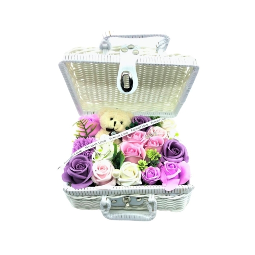 Aranjament trandafir de sapun cu ursulet in cos de rachita