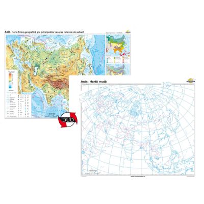 Asia. Harta fizico-geografica si a principalelor resurse naturale de subsol Duo 140x100 cm CR-3111DB