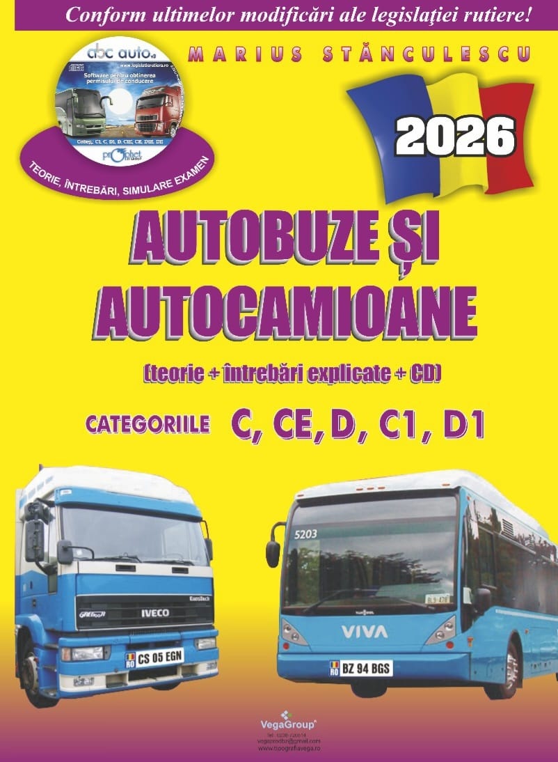 Autobuze si Autocamioane 2026. Mapa chestionare auto cu CD (cod acces online), teorie si intrebari explicate - Marius Stanculescu