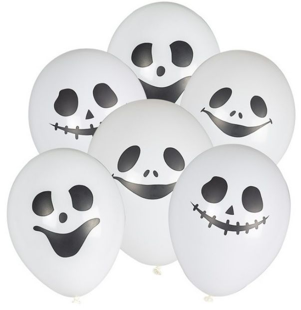 Baloane albe din latex cu imprimeu negru. Baloane stilizate ca fantome amuzante. Perfect pentru decorațiuni de Halloween, jocuri și petreceri tematice. Fabricat din latex de cauciuc natural. Poate fi umflat cu heliu sau aer. Baloane cu diametrul de 28 cm la umflare. Pachetul contine 6 bucati. Produsul a fost proiectat și fabricat în Polonia.