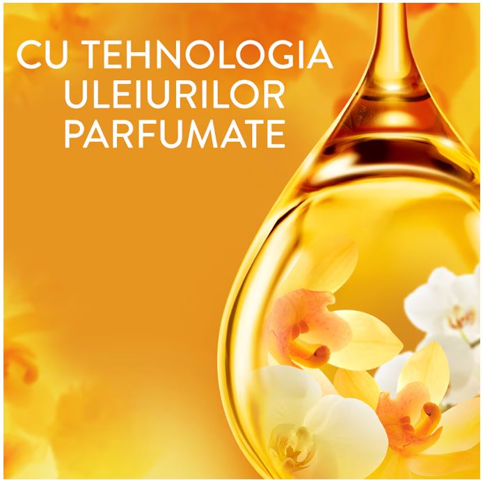 Balsamul de rufe Lenor Gold Orchid & Vanilla ofera un parfum de 3 ori mai durabil (comparativ cu Lenor Sensitive) pentru mici momente de relaxare pe parcursul intregii zile, datorita tehnologiei cu ulei de parfum. Inchide ochii si relaxeaza-te! Notele pretioase de orhidee se imbina perfect cu notele de gurmande de vanilie si creeaza un parfum cald care te poate ajuta sa te relaxezi.