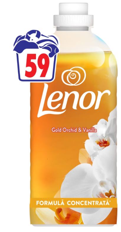 Lenor 1.239 L Gold Orchid & Vanilla este alegerea ideală pentru rufe moi, plăcut parfumate și cu un parfum luxos și persistent, ce adaugă rafinament fiecărei spălări.