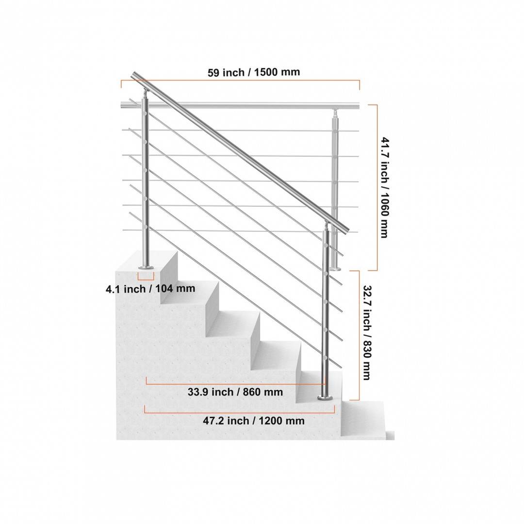 Balustrada inox, 4-5 trepte Vivatechnix, 1500 x 104 x 1060 mm, Unghi reglabil 0° - 45°, accesorii prindere