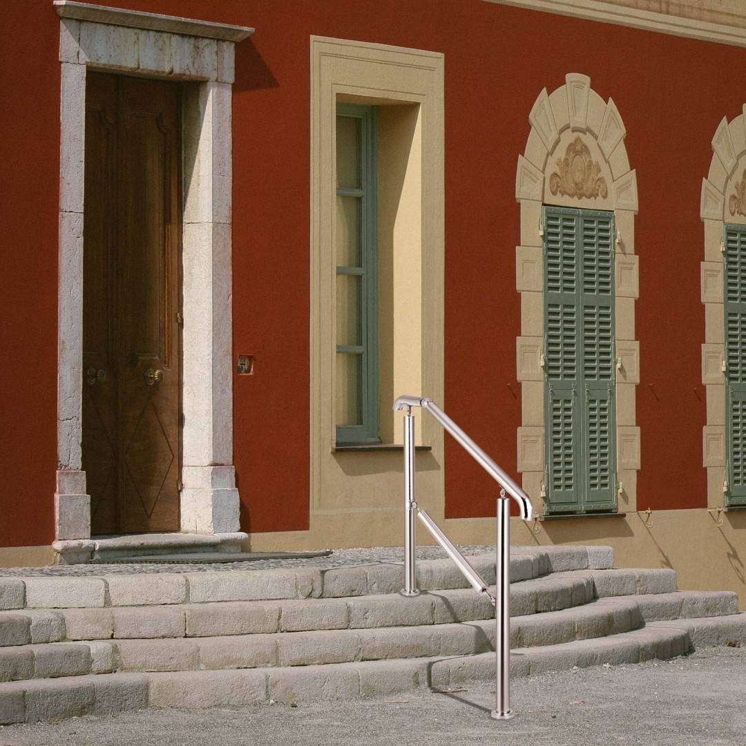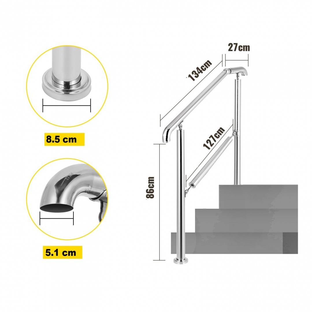 Balustrada inox pentru 4 sau 5 trepte Vivatechnix, Inaltime 86 cm, lungime 161 cm, pozitii reglabile Ajustabil pentru 4-5 trepte: Dimensiunea produsului (l x h): 161 x 86 cm; Distanta dintre barele verticale: 127 cm. Datorita unghiului reglabil de 0-45°, balustrada noastra pentru treptele exterioare se potriveste celor 4 sau 5 trepte ale dvs. Este perfecta pentru a ajuta oamenii sa mentina echilibrul atunci cand urca si coboara scarile in ploaie sau iarna. Capacitate mare de rulare: Cu baza de 0,12/3 mm grosime si tub de 0,05/1,2 mm grosime, aceasta balustrada de exterior poate sustine o greutate de pana la 200 kg. Fiind o bara de sprijin de incredere pentru familia dvs., ofera un plus de securitate batranilor, copiilor, femeilor insarcinate, membrilor familiei cu dizabilitati si persoanelor dupa operatie. Otel inoxidabil robust: aceasta balustrada pentru trepte este fabricata din otel inoxidabil 304 durabil, prevenind grijile legate de coroziune sau zgarieturi. Are un finisaj neted in oglinda, permitandu-va sa-l curatati cu apa sau carpa usor si rapid. Balustrada este proiectata sa reziste ani de zile, chiar si expusa la soare sau la ploaie. Instalare fara efort: Insotind balustrada exterioara pentru veranda sunt accesorii complete pentru o instalare usoara, inclusiv suruburi, cheie, surubelnita etc. Doar alegeti locatia dorita, marcati-o, gauriti pe suprafata de montare, montati suruburi cu trei φ0,35 /9 mm gauri pre-gaurite si, in final, plasati garnitura de baza. Utilizare in interior si in aer liber: balustrada scarilor este o necesitate pentru familia dvs., cu performante de incredere. Poate fi instalat pe trepte din beton, caramida si lemn de verande, balcoane, gradini, cladiri rezidentiale, hoteluri, garaje etc. Aceasta balustrada din otel inoxidabil este ideala pentru locurile pe care nu le puteti atasa de un perete sau de structura. Pasi: de la 4 la 5 Material: otel inoxidabil 304 Unghi reglabil: 0-45° Capacitate de incarcare: 200 kg Dimensiunea produsului (l x h): 161 x 86 cm Distanta dintre barele verticale: 127 cm Diametrul bazei: 8,5 cm Diametrul tubului: 5,1 cm Grosimea tubului: 1,2 mm Grosimea bazei: 3 mm Diametrul gaurii pre-forate: 9 mm Greutate produs: 7,8 kg Culoare: Argintiu