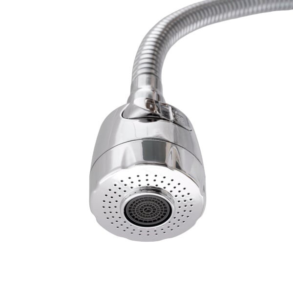 Bateria WAVE-Z-777 este conceputa pentru bucatarii moderne unde versatilitatea si eficienta sunt esentiale. Pipa flexibila de 43 mm permite o manevrabilitate completa si reglarea precisa a directiei jetului de apa, in timp ce cele doua functii de debit faciliteaza atat spalarea vaselor, cat si umplerea rapida a recipientelor sau curatarea chiuvetei.