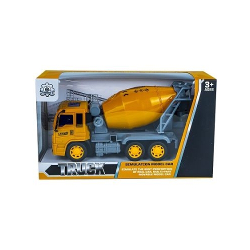 Camionul betoniera ce are cuva rotativa functioneaza prin frictiune si emuleaza foarte bine realitatea. Caracteristici - Aceasta jucarie imita realitatea si este foarte atractiva datorita design-ului modern si apropiat realitatii. - Cuva basculantei se roteste fie invartind-o direct cu mana fie invartind rotita cu maner din fata ei. - In spatele cuvei este o banda de golire care de asemenea se roteste. - Camionul functioneaza prin frictiune pe cele 2 roti din fata. - Masina are 3 osii si 6 roti. - Stimuleaza motricitatea indemanarea si imaginatia copiilor. - Betoniera este realizata din plastic non-toxic. Avertizare Produsul este nou si comercializat in ambalajul original al producatorului. Imaginile de pe acest site au caracter informativ. Produsul nu functioneaza cu baterii. Ambalajul trebuie indepartat recuperat si aruncat de catre un adult inainte de a se da spre utilizare copilului. Nu lasati ambalajele produselor la indemana copiilor. Se recomanda utilizarea produsului sub supravegherea unui adult. Produsul poate contine piese mici care se pot inghiti sau inhala de cei mici existand pericolul de sufocare sau nu este potrivita copiilor mai mici de 3 ani. Pastrati instructiunile si etichetele pentru referinte viitoare. Pastrati produsul departe de foc si nu il lasati in preajma temperaturilor ridicate si a umiditatii. Nerecomandat copiilor cu varsta mai mica de 3 ani