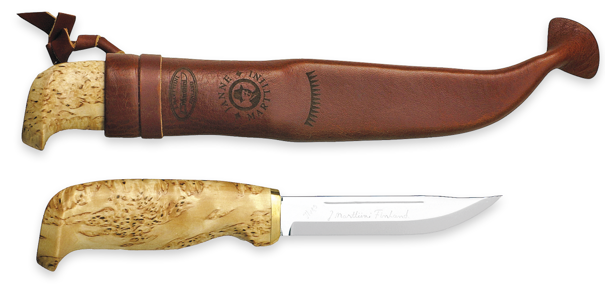 Manerul din mesteacan buclat se potriveste bine intr-o mana mai mare. Lama este din otel inoxidabil cromat.