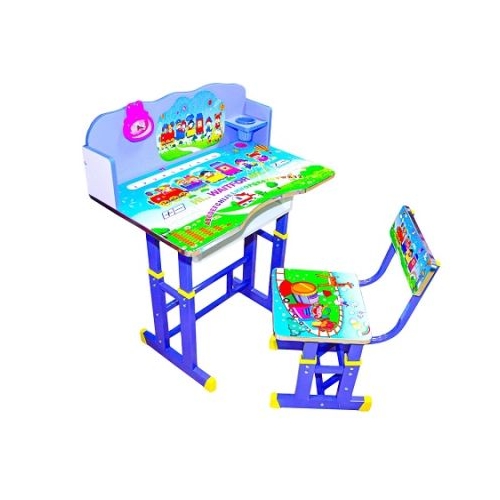 Setul de birou si scaun este perfect pentru a decora camera oricarui copil biroul avand un design placut viu colorat. Este comod si usor de utilizat intretinut. Biroul este ideal pentru copii carora le place sa coloreze sa lipeasca sau pur si simplu sa scrie. Caracteristici - Atat masa cat si scaunul sunt ajustabile pe inaltime. - Biroul are pe suprafata lui erse desene culoarea predominanta fiind albastru. - Toate colturile biroului sunt rotunjite pentru protectia celor mici. - Biroul dispune de erse dotari pahar de pictura ceas si raft. - Produsul este realizat din MDF metal si plastic de calitate non toxic. - Biroul poate fi utilizat pentru activitati scolare sau recreative. Dimensiune birou montat la inaltimea medie 69x44x90 cm Inaltime pana la tablie birou inaltime medie 37 cm Dimensiune scaun montat la inaltimea medie 33x30x65. 5 cm Avertizare Acest produs contine piese mici. In cazul putin probabil al inghitirii unor astfel de piese consultati de urgenta un specialist. Produsul este nou si comercializat in ambalajul original al producatorului. Imaginile de pe site au caracter informativ. Ambalajul trebuie indepartat recuperat si aruncat de catre un adult inainte de a se da spre utilizare copilului. Nu lasati ambalajele produselor la indemana copiilor. Se recomanda utilizarea produsului sub supravegherea unui adult. Produsul poate contine piese mici care se pot inghiti sau inhala de cei mici existand pericolul de sufocare sau nu este potrivita copiilor mai mici de 3 ani. Pastrati instructiunile si etichetele pentru referinte viitoare. Pastrati produsul departe de foc si nu il lasati in preajma temperaturilor ridicate si a umiditatii. Datorita masurarii manuale a produsului poate exista o diferenta minora fata de dimensiunea reala a produsului.
