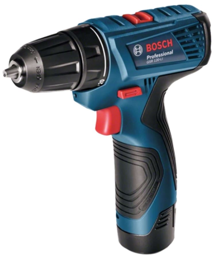 Bosch GSR 120-LI Masina de gaurit si insurubat cu 2 acumulatori Li-Ion 12 V, 2Ah, Valiza + Set 23 accesorii