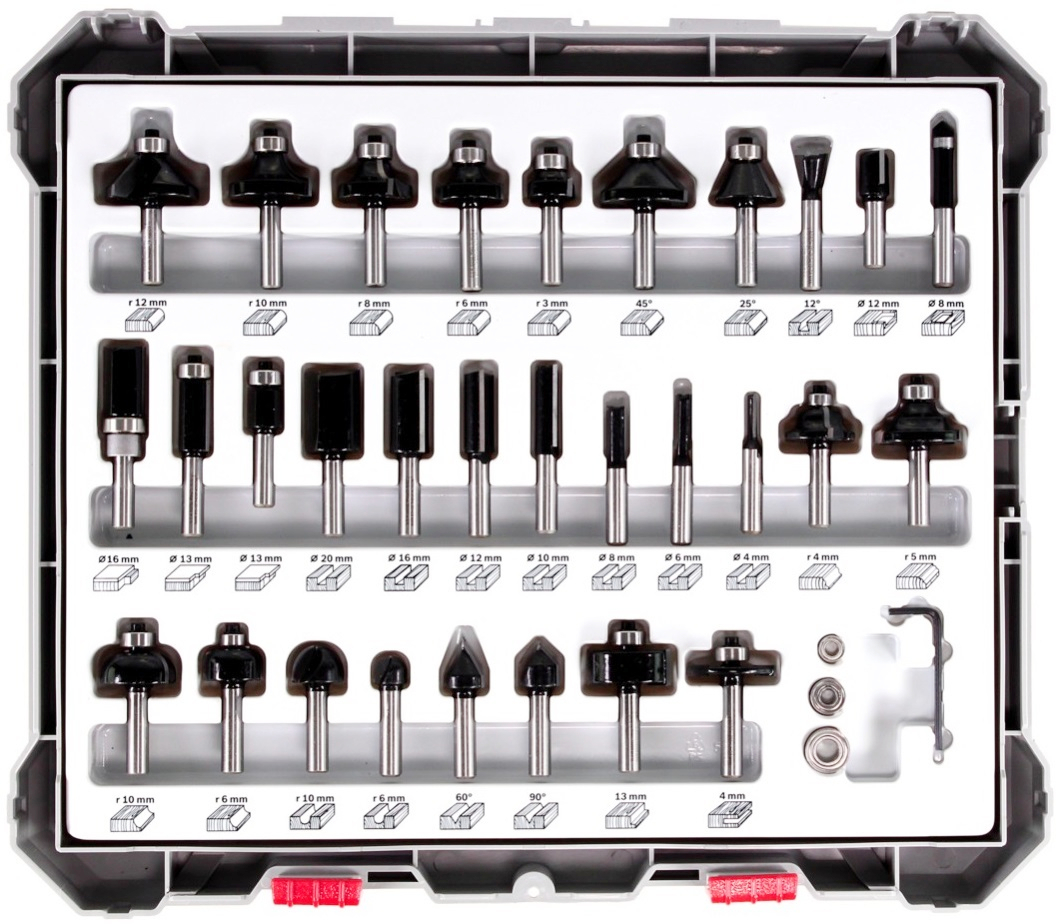 1 x freza de rotunjit: lungime totala: 55 mm, lungime utila: 13 mm, diametru: 25 mm, raza: 6 mm