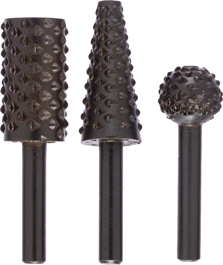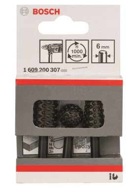 Bosch Set raspel - 3 freze manuale, rotunda, cilindrica, conica, 6mm