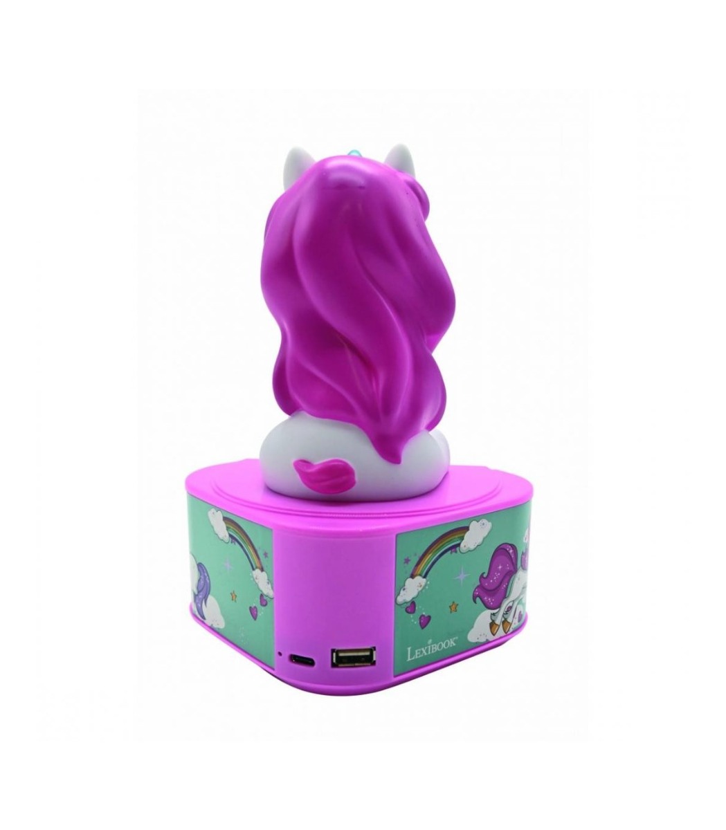 Boxa cu Lumini de Noapte LEXIBOOK este companionul perfect pentru camera copiilor, combinand muzica preferata cu un spectacol vizual fascinant. Figurina unicorn se lumineaza in ritmul muzicii, aducand bucurie si relaxare in orice moment.