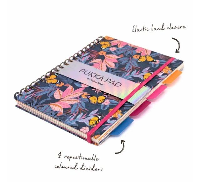 Caiet cu spirala si separatoare Pukka Pad Bloom, format B5, 200 pag, dictando, hartie 80g, microperforatii, coperti tari
