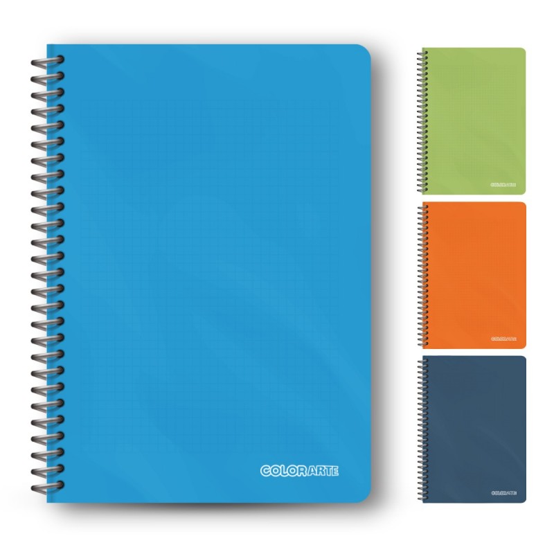 Caiet cu spirala plastic A4 Colorarte, 100 file, matematica, colturi rotunjite, coperta plastic 350microni, 70g/mp