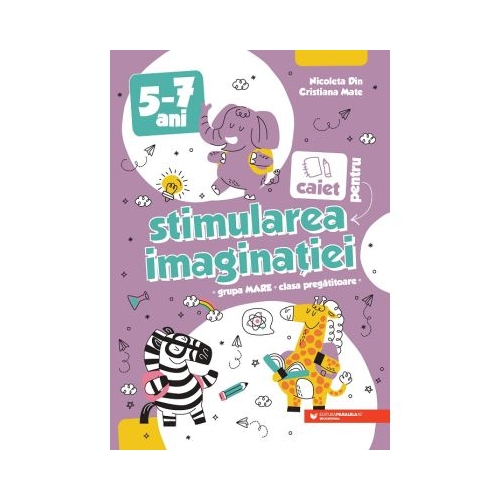Lucrarea Caiet pentru stimularea imaginatiei. 5 7 ani este conceputa ca material de lucru pentru grupa mare si clasa pregatitoare. Cu ajutorul acestui caiet copiii isi dezvolta imaginatia prin rezolvarea sarcinilor de lucru erse si atractive. Imaginatia este o competenta cheie pentru viitor. Are un rol important in dezvoltarea gandirii a memoriei a atentiei a abilitatilor de comunicare a stimei de sine a empatiei a increderii in propriile abilitati a capacitatii de a gasi rapid solutii la probleme. Cerintele din acest caiet sunt erse si astfel concepute incat sa fie rezolvate cu placere si sa fie cat mai apropiate de interesele copiilor si universul lor de cunoastere. Copiii sunt provocati sa isi imagineze un alt final pentru o poveste sa deseneze in jurnalul de calatorie ceea ce observa intr-o padure fermecata sa deseneze un oras imaginar sa inventeze nume haioase pentru copii sau pentru dinozauri sa gaseasca obiecte din mediul inconjurator care pot avea doar o anumita culoare si multe alte activitati deosebite.