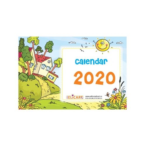 Calendar de perete format A4 landscape, cu spira si inel de agatare metalice.