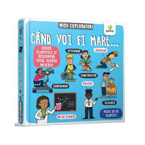 „Tu ce vrei sa te faci cand vei fi mare?” – aceasta este una dintre intrebarile pe care copiii le aud cel mai des. Unii vor sa devina cantareti, altii arheologi, medici sau astronauti. Dar cum afli, de fapt, ce ti s-ar potrivi? Copiii vor explora nenumarate meserii in acest volum interactiv din colectia „Micii exploratori”! Cartea contine peste 30 de clapete.