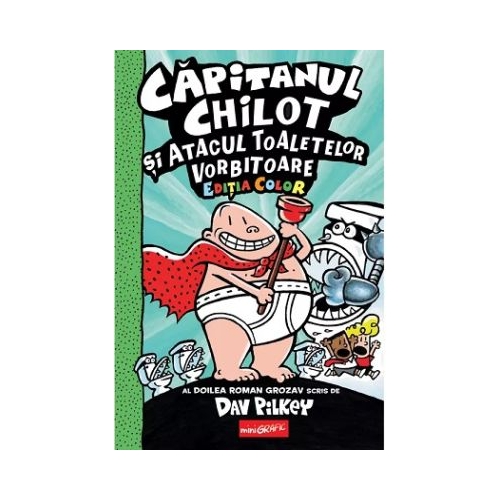 Traducere de Irina Georgescu Culori de Jose Garibaldi Al doilea roman grozav scris de Dav Pilkey De obicei George si Harold sunt niste pusti responsabili. De obicei cand se intampla ceva rau George si Harold sunt cei responsabili De data asta o dau in bara rau de tot cu ultima lor farsa si ajung sa creeze o armata infricosatoare de toalete vorbitoare Noroc ca stiu ei un supererou cu o putere nemaipomenita care sa le vina in ajutor. O CARTE CU RASF-O-RAMA Faimoasa si deosebita tehnica de animatie care te lasa sa dai chiar tu viata scenelor de actiune