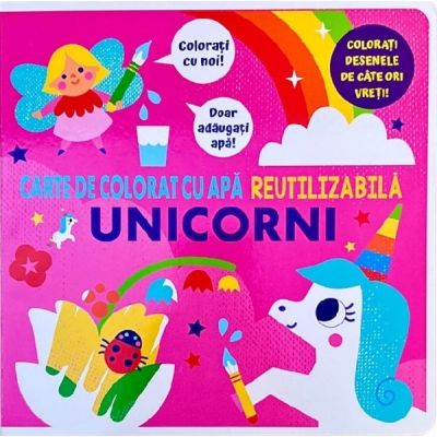 Carte de colorat cu apa. Reutilizabila Unicorni