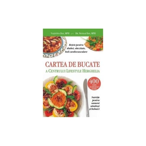 De ce o carte de bucate de la Herghelia Credem ca merita sa scrii o carte cand ai in spate ani grei de experienta in domeniul pe care urmeaza sa-l abordezi in ea atunci cand ai de spus ceva ce nu a fost artificial plasmuit intr-un birou scriind carti doar din alte carti ci este rodul multor ani de practica si pionierat dificil. Credem ca merita sa scrii o carte de bucate atunci cand stii din experienta ca aceste retete si meniurile vegetariene din ea au ajutat la Herghelia si dincolo de ea zeci de mii de oameni si iata acum prin raspandirea acestor cunostinte in forma tiparita alte zeci de mii de oameni vor fi orientati sa traiasca mai bine sa fie mai sanatosi si de ce nu mai fericiti. O carte care se bazeaza pe experienta medicilor nutritionistilor si a personalului din bucataria Centrului Lifestyle Herghelia care au deservit in ultimii 13 ani peste 10. 000 de pacienti. Experienta celor peste 12. 000 de mese servite pacientilor care ne-au calcat pragul se traduce in paginile acestei carti de bucatarie vegetariana. Retetele pregatite de-a lungul anilor au contribuit din plin la rezultatele exceptionale obtinute in cadrul programului nostru. Am fost abordati de-a lungul anilor de pacienti de la Herghelia dar si de multi altii care ar fi dorit sa adopte o dieta ideala care s-a dovedit a fi eficienta in obezitate diabet ateroscleroza hipertensiune sau in preventia cancerului. Ne-au intrebat Aveti o carte de bucatarie terapeutica vegetariana De ce nu scoateti o astfel de carte cu experienta pe care o aveti si cu retetele delicioase pe care le folositi de atatia ani A sosit momentul sa dam curs respectivelor cereri prin acest prim volum cu retete de la Herghelia. A sosit momentul ca si cei care nu au venit inca la Herghelia sa poata beneficia de informatiile si rezultatele aplicarii unei diete total vegetariene echilibrate. CUPRINS Prefata Introducere Capitolul 1 - Raspunsuri la intrebarile pentru cine a fost scrisa cartea de bucate vegetariene - care este semnificatia simbolurilor - de ce sunt recomandari numai pentru bolnavii cardiovasculari diabetici si obezi - doua variante de diete vegetariene - de ce o carte de bucatarie cu retete exclusiv bazate pe alimente de origine vegetala Capitolul 2 - Mecanisme comune in aparitia bolilor cardiovasculare a obezitatii si diabetului si a sindromului metabolic si implicatiile practice pe linie de nutritie Capitolul 3 - Recomandarile nutritionale actuale ale forurilor stiintifice mondiale atat pentru populatia sanatoasa cat si pentru bolnavii cardiovasculari obezi si diabetici Capitolul 4 - Statistici ale celor 13 ani de activitate de la Herghelia si studiul clinic randomizat realizat in colaborare cu Universitatea Loma Linda SUA Capitolul 5 - Principii simple de alcatuire a unui meniu vegetarian si recomandari nutritionale in functie de necesarul caloric Capitolul 6 - Un exemplu practic de meniu vegetarian pentru 11 zile Capitolul 7 - Ghid practic de tranzitie de la dieta omnivora la cea vegetariana Capitolul 8 - Posibile deficiente nutritionale legate de dieta total vegetariana vegana inadecvat planificata Capitolul 9 - Retete validate la Centrul Lifestyle Herghelia 1. Micul dejun 2. Pateuri 3. Salate 4. Sosuri si Dressinguri 5. Aperitive 6. Supe si ciorbe 7. Felul doi fel principal 8. Deserturi 9. Paine patiserie si pizza 10. Condimente 11. Retete de baza Apendice - Ghid nutritional omnivor pentru populatia generala din Romania prezentat de medicii Centrului Lifestyle Herghelia la Conferinta Nationala a Sectiunii de Cardiologie Preventiva a Societatii Romane de Cardiologie Paltinis 2002 Apendice - Resurse pentru aprovizionarea cu alimente vegetariene - adresele unor firme din Romania care comercializeaza sau produc alimente vegetariene Apendice - Index de retete