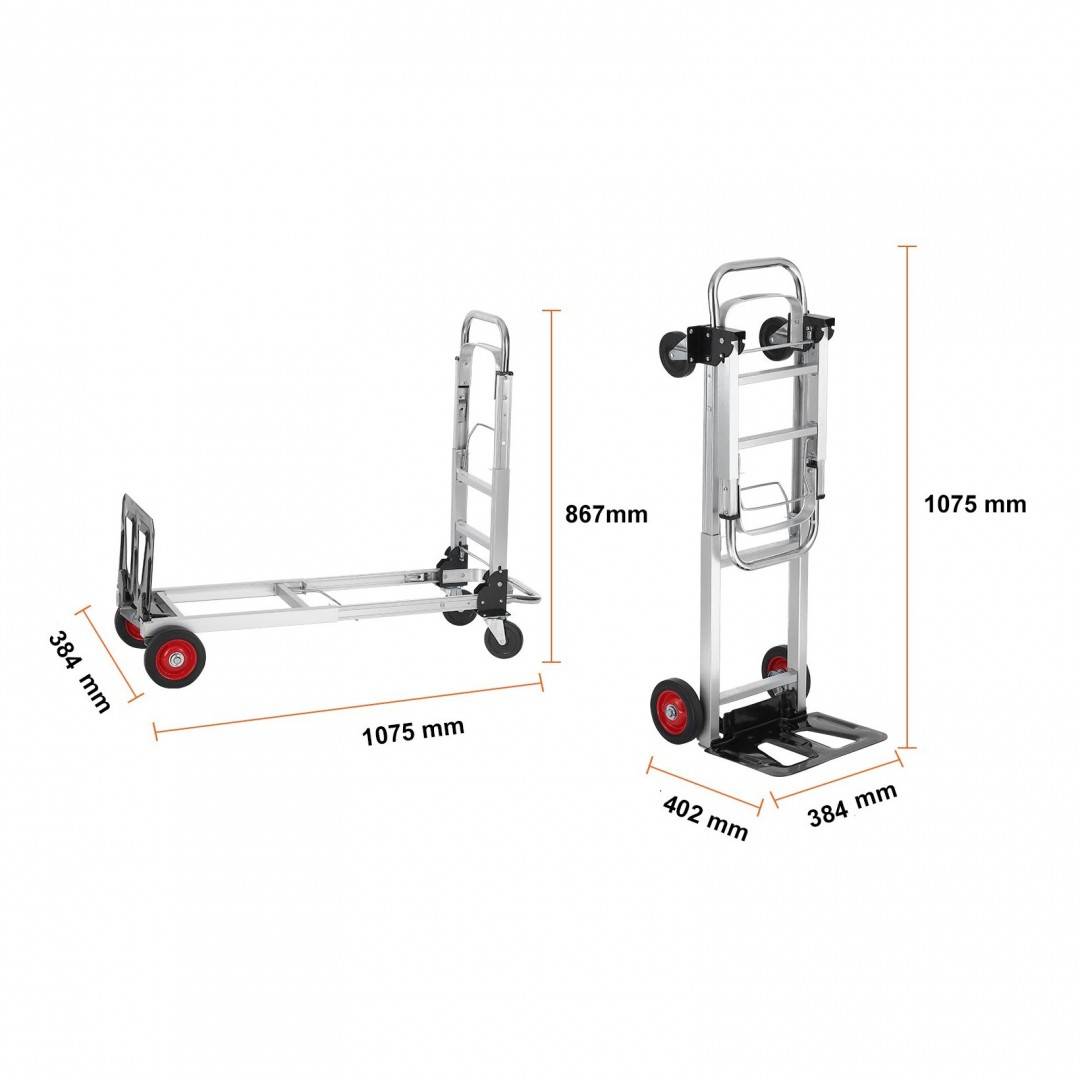 Carucior marfa 2 in 1, Capacitate max 181 kg, Greutate 8 Kg, Aluminiu, Pliabil, 384 x 1075 x 867 mm
