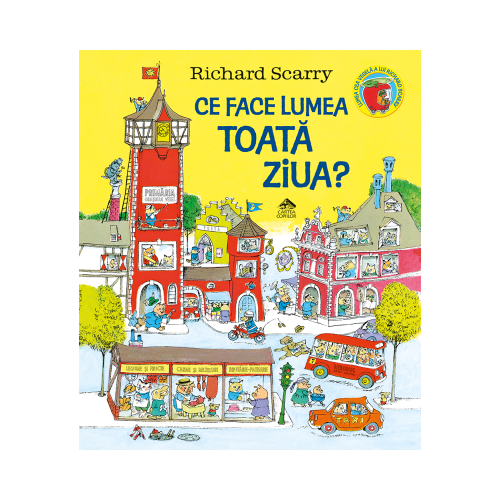 Viata merge inainte pentru ca zi de zi toata lumea face ceva folositor nu numai pentru sine ci si pentru ceilalti. Ce face lumea toata ziua in Orasul Vesel Copiii merg la scoala sau la biblioteca se joaca sau isi ajuta parintii brutarii fac paine doctorii ingrijesc pacientii constructorii fac drumuri si case uzinele fac curent electric si apa curata tipografiile fac carti vanzatorii vand fructe legume ziare si tot ce vrei trenurile si avioanele vin si pleaca bunicile asteapta vesti de la nepoti pompierii sunt la datorie politistii pastreaza ordinea si linistea totul pare ca merge de la sine. Dar nu e asa. Lumea cea vesela a lui Richard Scarry poate parea demodata la prima vedere cititorului de azi dar umorul intamplarilor si bogatia de personaje iepuri caini vulpi ursi purcelusi lei ii vor castiga si pe copiii din zilele noastre pentru ca mesajul cartii este unul important si oricand adevarat viata merge inainte doar pentru ca zi de zi toata lumea face ceva folositor nu numai pentru sine ci si pentru ceilalti. Richard Scarry 1919 1994 este unul dintre cei mai mari autori americani de literatura pentru copii. Cele mai cunoscute carti ale sale sunt cele din seria Lumea cea vesela o lume in care personajele numai animale de toate felurile - sunt soferi zidari politisti profesori sau savanti locuiesc in case conduc masini trenuri sau avioane merg la munte la mare sau la muzee totul povestit cu foarte mult umor. 3-9 ani Traducere de Marius Chivu