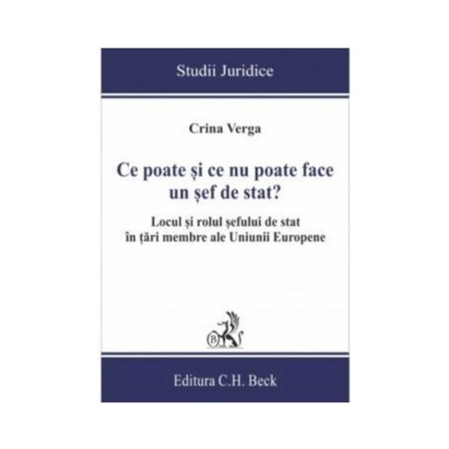 Un merit incontestabil al intregii lucrari veritabil aspect de originalitate il constituie cercetarea fiecarui element ce caracterizeaza institutia sefului de stat a regimului juridic aplicabil acestuia prin folosirea in permanenta a unor informatii din doctrina legislatia si jurisprudenta constitutionala apartinand altor state membre ale Uniunii Europene. Este vorba intotdeauna de cele cincisprezece prime state membre comparativ cu regimul aceleiasi institutii din Romania. Diversitatea documentatiei reperele legislative evocate decurgand din logica punerii in aplicare a textului constitutional sunt elementele care sarguincios valorificate au permis elaborarea unei lucrari sistematizate caracterizate prin originalitate si o certa valoare stiintifica. Prof. univ. dr. Dana Tofan Facultatea de Drept Universitatea din Bucuresti Din cuprins Originea si evolutia institutiei sefului de stat Evolutia institutionala a sefului de stat in doctrina si legislatia antebelica si postbelica Evolutia institutionala a sefului de stat in doctrina si legislatia actuala Rolul sefului de stat in Romania. Aspecte din practica Raporturile sefului de stat cu celelalte autoritati publice. Aspecte din practica statala romaneasca Locul si rolul sefului de stat in alte tari membre ale Uniunii Europene. Aspecte din practica statala Puncte forte informatii complete pe tema propusa analizei analiza ampla a institutiei sefului de stat abordare comparativa consideratii de lege ferenda ample referinte bibliografice Despre autori Crina VERGA este formator la Institutul National de Administratie din anul 2018 si lector universitar doctor la Universitatea George Bacovia din Bacau.