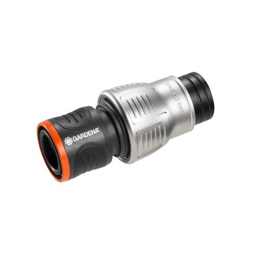 Conectorul Premium cu stop pentru furtun GARDENA cu design metalic de inalta calitate permite o conexiune rapida si convenabila si inlocuirea dispozitivului la capatul furtunului.