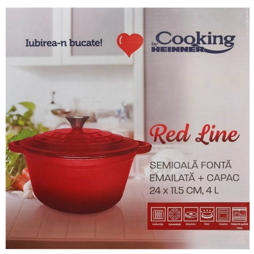 COOKING BY HEINNER RED LINE SEMIOALA FONTA EMAILATA+CAPAC 24X11.5CM 4L HR-KN-SM4