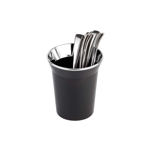 Cos de gunoi pentru masa / cos pentru tacamuri, model "TOP CHROM", cu inel cromat, de culoare neagra, capacitate 1 litru, dimensiuni 130x150mm