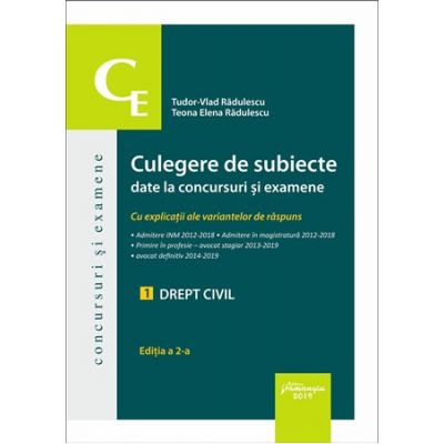Culegere de subiecte date la concursuri si examene. 1 Drept civil. Editia a 2-a. Cu explicatii ale variantelor de raspuns - Tudor Vlad Radulescu, Teona Elena Radulescu