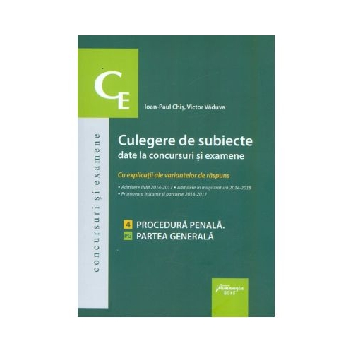 Culegere de subiecte date la concursuri si examene cu explicatii ale variantelor de raspuns. 4. Procedura penala. Parte generala - Ioan-Paul Chis, Victor Vaduva