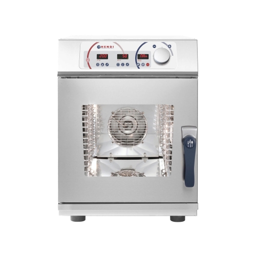 Cuptor convectie cu umidificare, compact HENDI NANO, 2 elemente incalzire, 1 ventilator reversibil, termostat reglabil, 50-260 gr C, timer 0 - 120 min, cu sonda si sistem de spalare, 6 tavi x GN 1/1, putere 7000 W