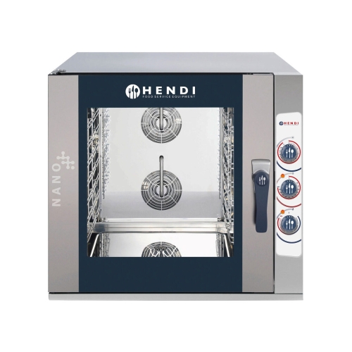 Cuptor convectie cu umidificare, HENDI NANO, capacitate 7 tavi x GN 1/1, 2 elemente incalzire, 2 ventilatoare, termostat reglabil, 50-260 gr C, timer 0 - 120 min, 10800 W, 920x834x(H)859 mm