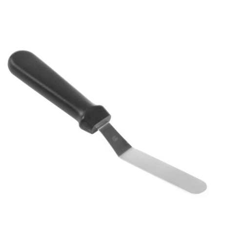 Cutit pentru omleta, patiserie, tort, placinte.. Lama din otel inoxidabil plata, maner negru din polipropilena. Dimensiuni lama 110x19 mm.
