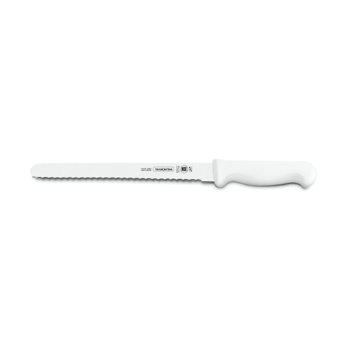 Cutit pentru sunca/paine, gama PROFISSIONAL MASTER, lama din inox de foarte buna calitate (DIN 1.4110) supus unui tratament termic special constand in calire, tratare sub 0ºC (congelare) si intarire, in vederea obtinerii unei duritati de peste 56 HRC, lungime lama 304 mm, maner culoare alba din polipropilena cu protectie antimicrobiana Microban®, produs cu certificare NSF U.S.A., lungime totala 400 mm