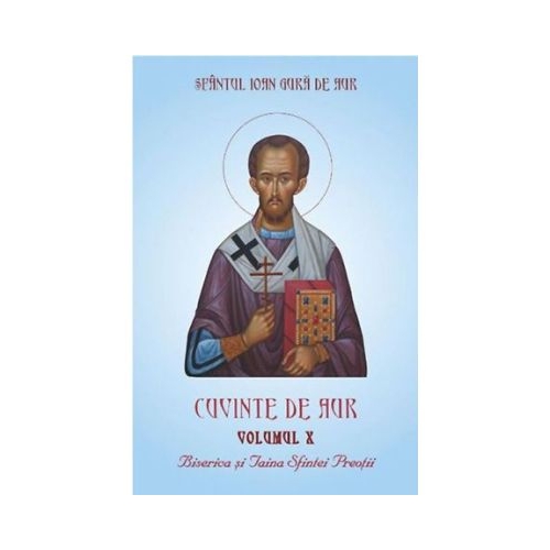 Cu Harul lui Dumnezeu Celui intreit in Persoane, si cu mijlocirile Invatatorului Ioan Gura de Aur, Dascalul Bisericii Universale, purcedem la editarea celui de-al zecelea volum din seria Cuvinte de aur, avand ca tema Biserica si Taina Preotiei. Volumul cuprinde pe larg invataturi despre Biserica, despre mersul la biserica, despre Preotie, preot si predicator, despre pacatul osandirii preotului, despre episcop si hirotonie.